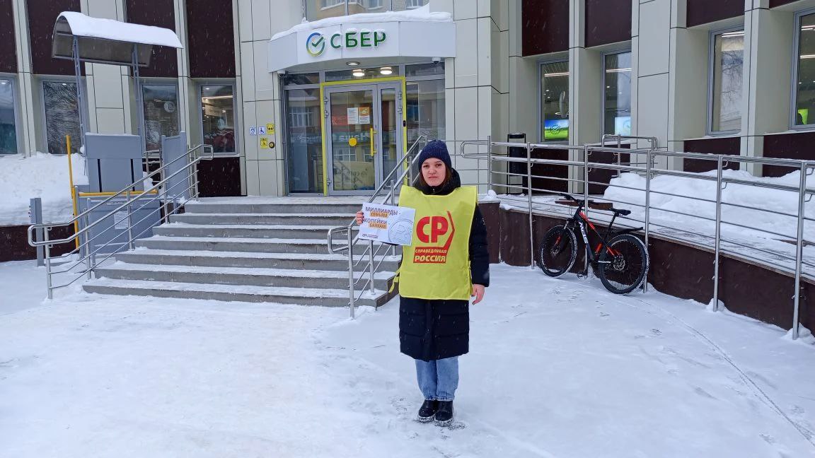 Пикеты прошли одновременно по всей стране – от Калининграда до Владивостока.. Партийцы, депутаты всех уровней и неравнодушные граждане вышли к отделениям банков, чтобы напомнить финансовым властям: за сухими цифрами отчетов стоят живые люди. В Сыктывкаре такой пикет состоялся у здания одного из отделений банка.